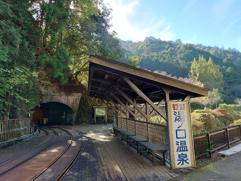 湯ノ口温泉の横に軌道が敷かれていた.鉱山鉄道の跡だった.まさか温泉周辺が鉱山で繁栄していた町とは露知らず.私の好きな絵本「しんりんてつどう」(みねむらかつこ 1977 福音館書店)の挿絵のような雰囲気がたまらない.