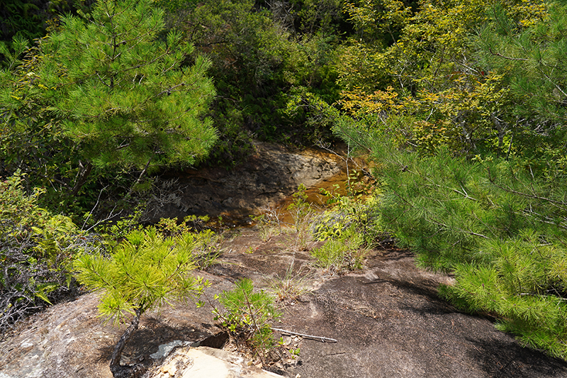 岩質とフリクションが良くて,トラバースならできる.大岩を過ぎてから沢沿いに下っていく.沢もナメが発達している.水量は町の中の溝レベルだけど.