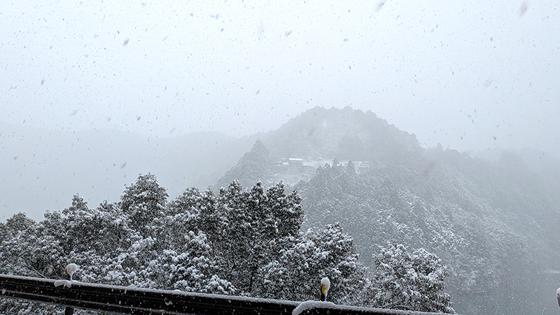 そこから山深い県道229(古座川熊野川線)を走り,国道168の熊野川温泉さつきへ抜けた.県道を走っていると雪が降り始めた.山深く,誰ともすれ違わないので少々不安にある.熊野川温泉を出発すると,一旦は小康状態になっていた降雪が一気に激しくなる.なんとか十津川に至るもついに吹雪いてきた.